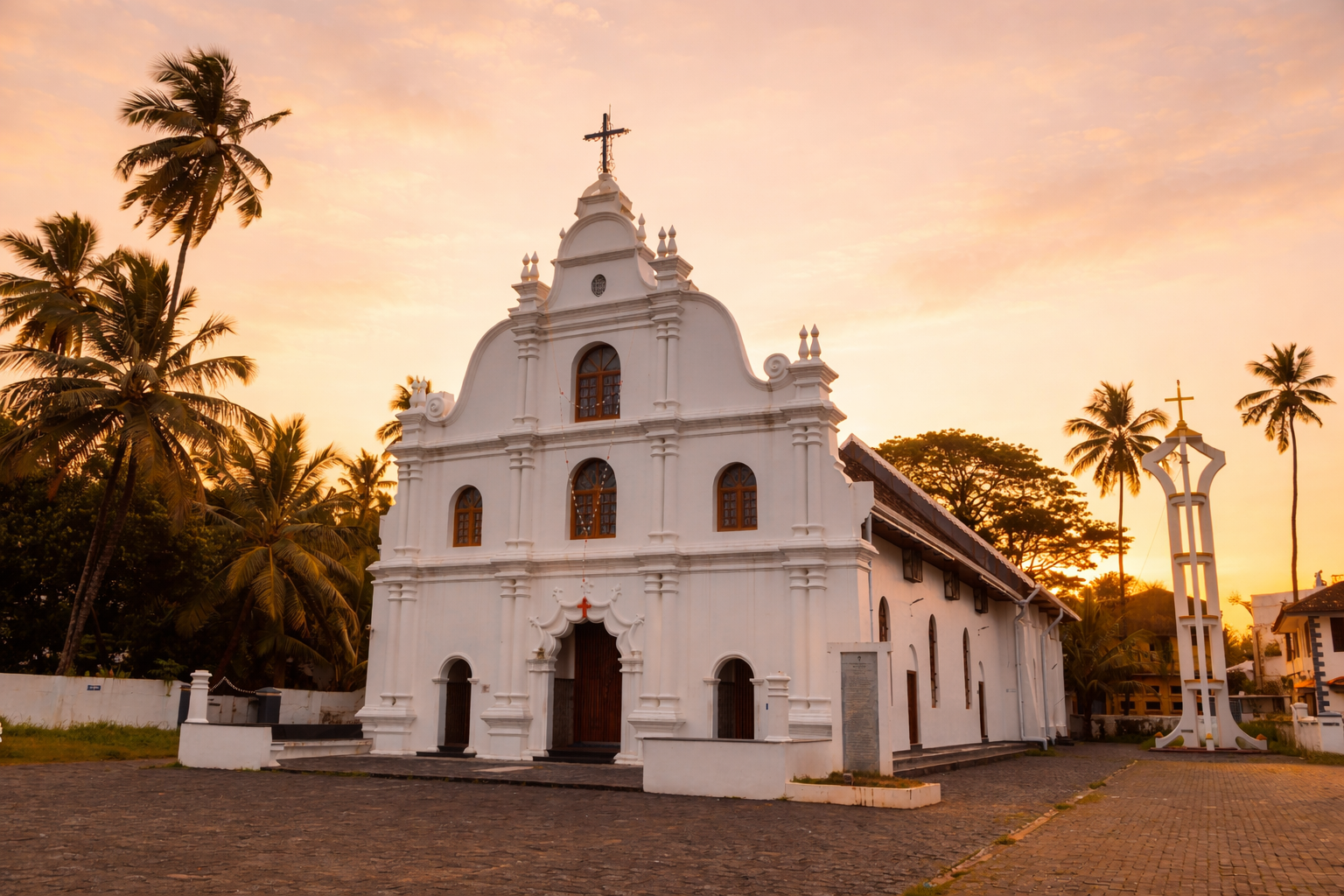 Kochi: Coastal conditions with warm days, sea breeze, and vibrant golden-hour light along heritage streets and harbour areas